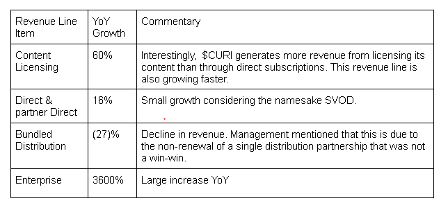 Third, it is always concerning when there is turnover in the executives. Devin Emery, the Chief Product Officer, is leaving for morning brew. He is still involved with $CURI on an advisory basis and is still on the board of directors of Nebula. Nebula is a creator-owned and operated streaming service closely partnered with $CURI. It seems like he left on good terms and more of a greener pasture thing rather than something wrong with $CURI.