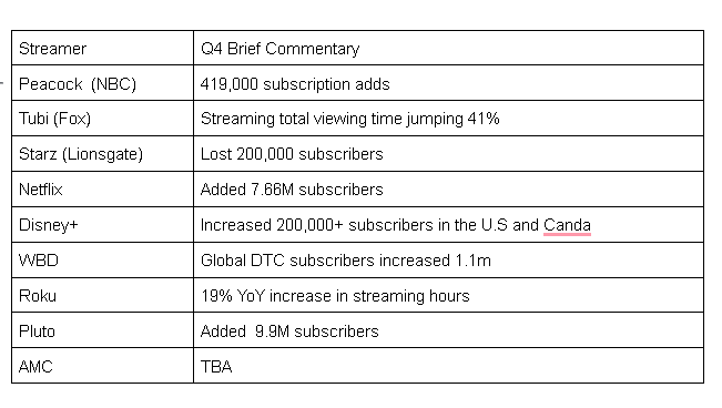 Many of $CURI’s competitors have already released Q4, which offers an exciting look into the media industry. Competitors include Roku, WBD, Para, AMC, Disney, and Fubo.